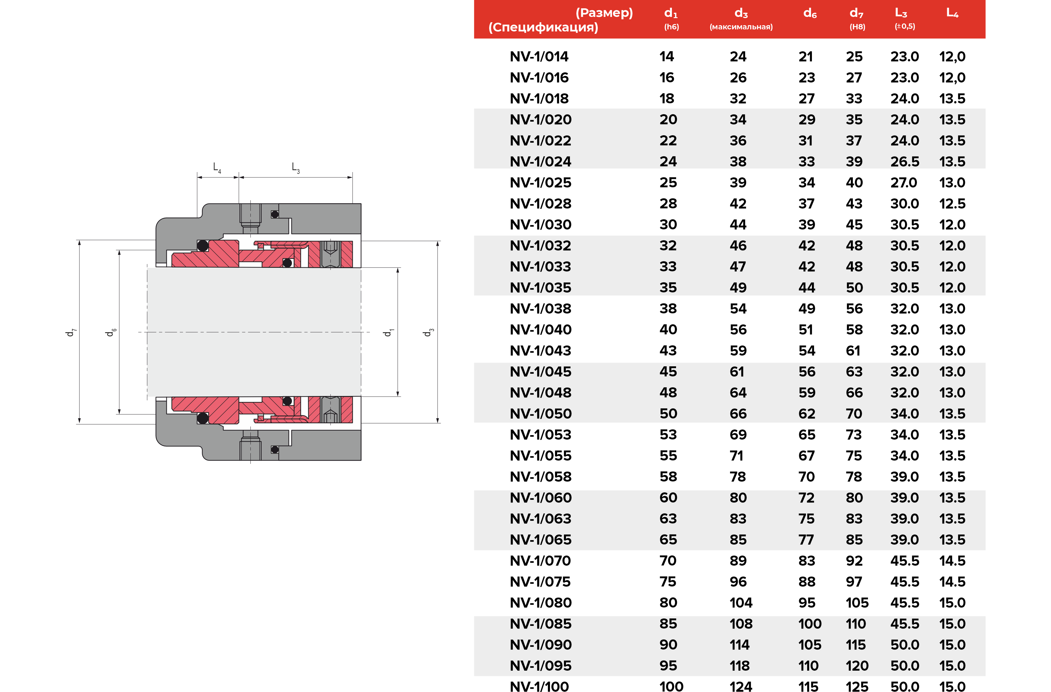 | Диаметр вала, мм | от 14 до 100 |