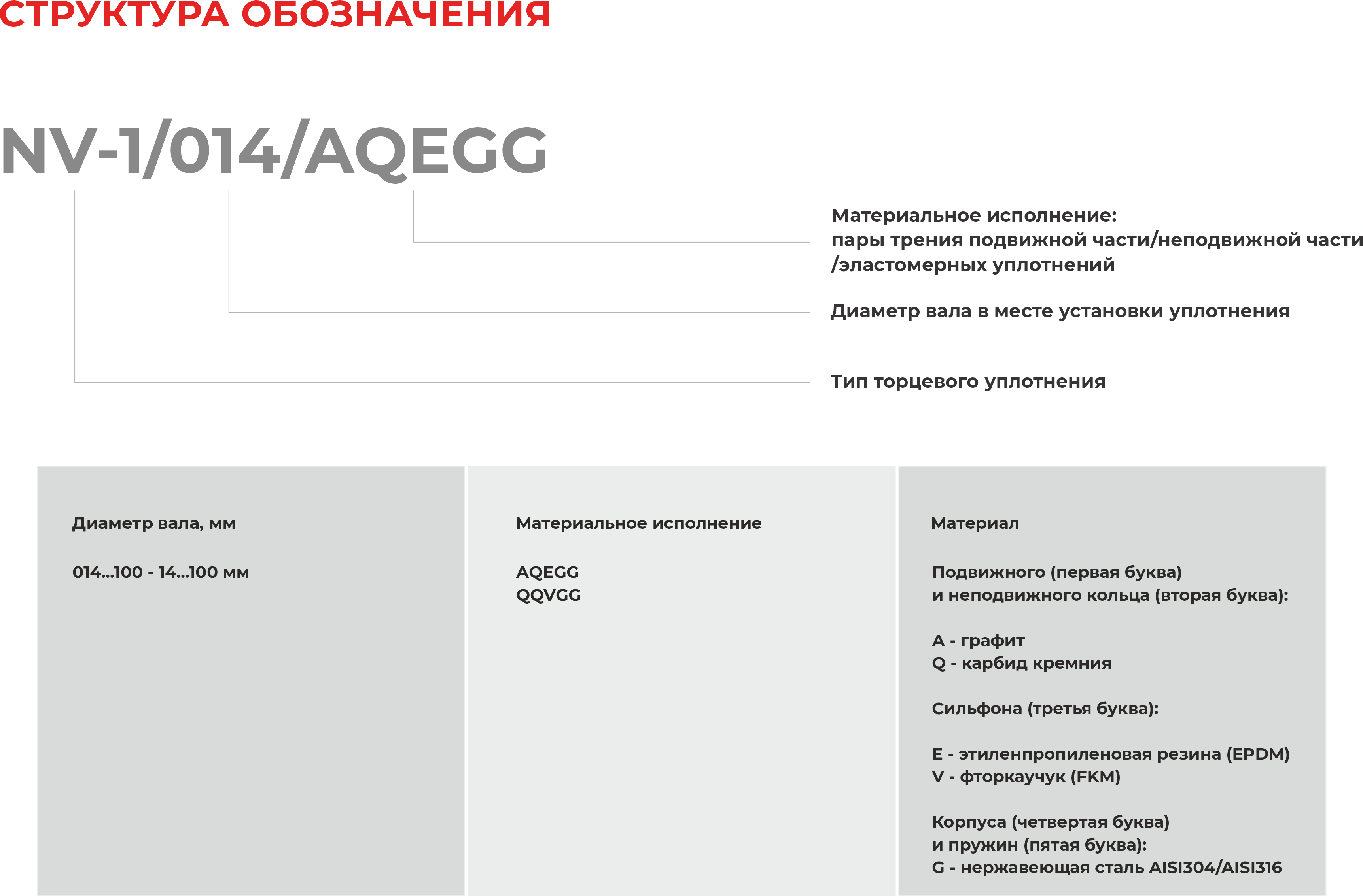 Характеристики торцевого уплотнения NV-1/095/QQVGG